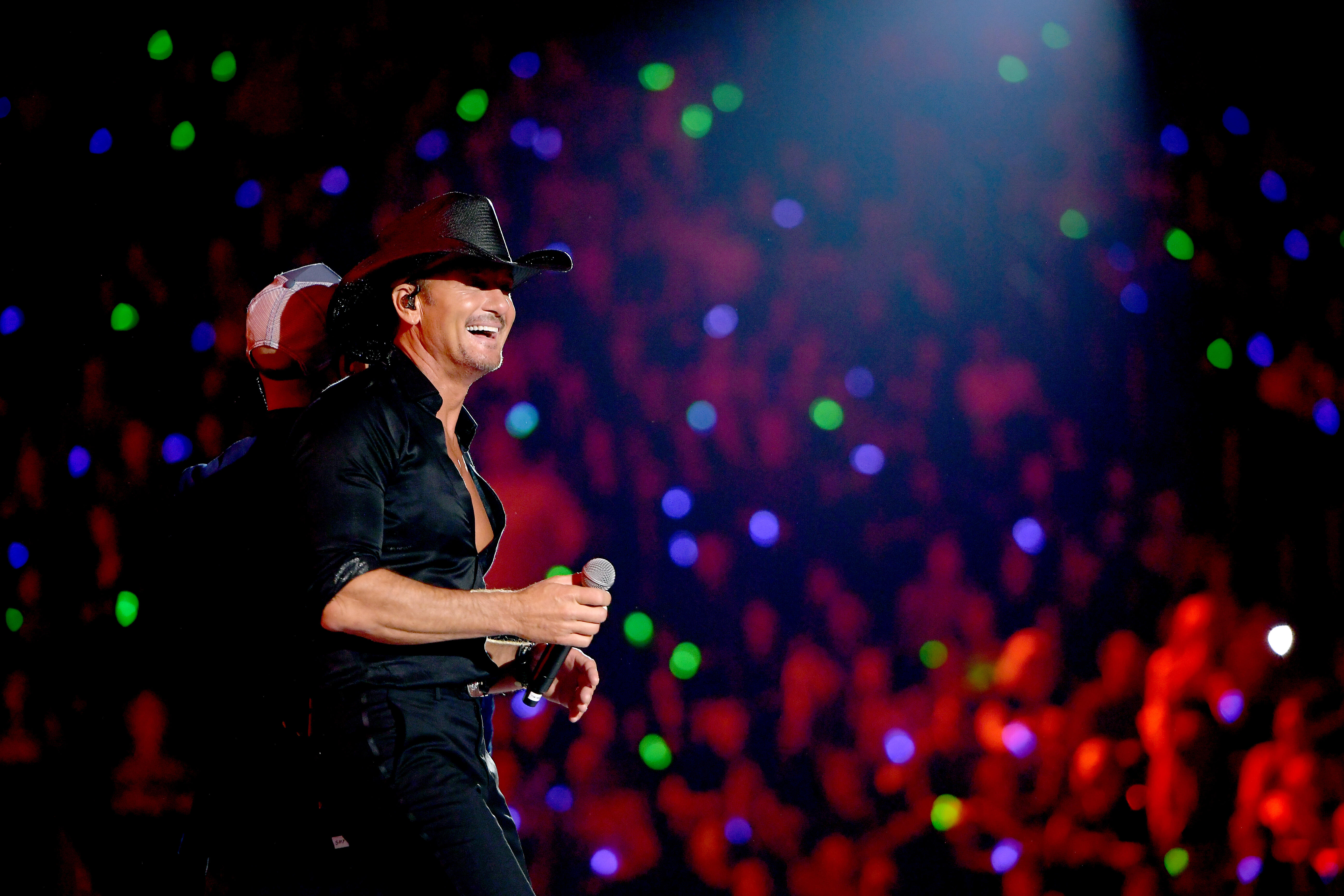 Next was “She’s My Kind of Rain,” the 2002 hit from seventh studio album, Tim McGraw and the Dancehall Doctors. “This is me trying to be GQ,” McGraw said with a laugh. “Country GQ, I guess. I’m trying to be cool… I felt like I was cool for a little bit. Now, looking back at it, maybe I wasn’t so cool.”