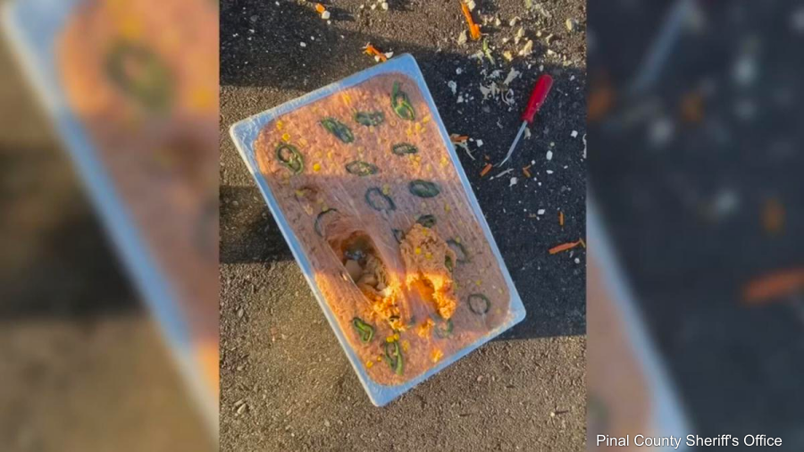 Inside the vehicle, deputies found buffet-style pans that were filled with food. But, when one deputy picked up one of the pans, there was something "off" about it. Pinal county Sheriff Mark Lamb said, "He picked up one of the trays and noticed it was heavier than normal."