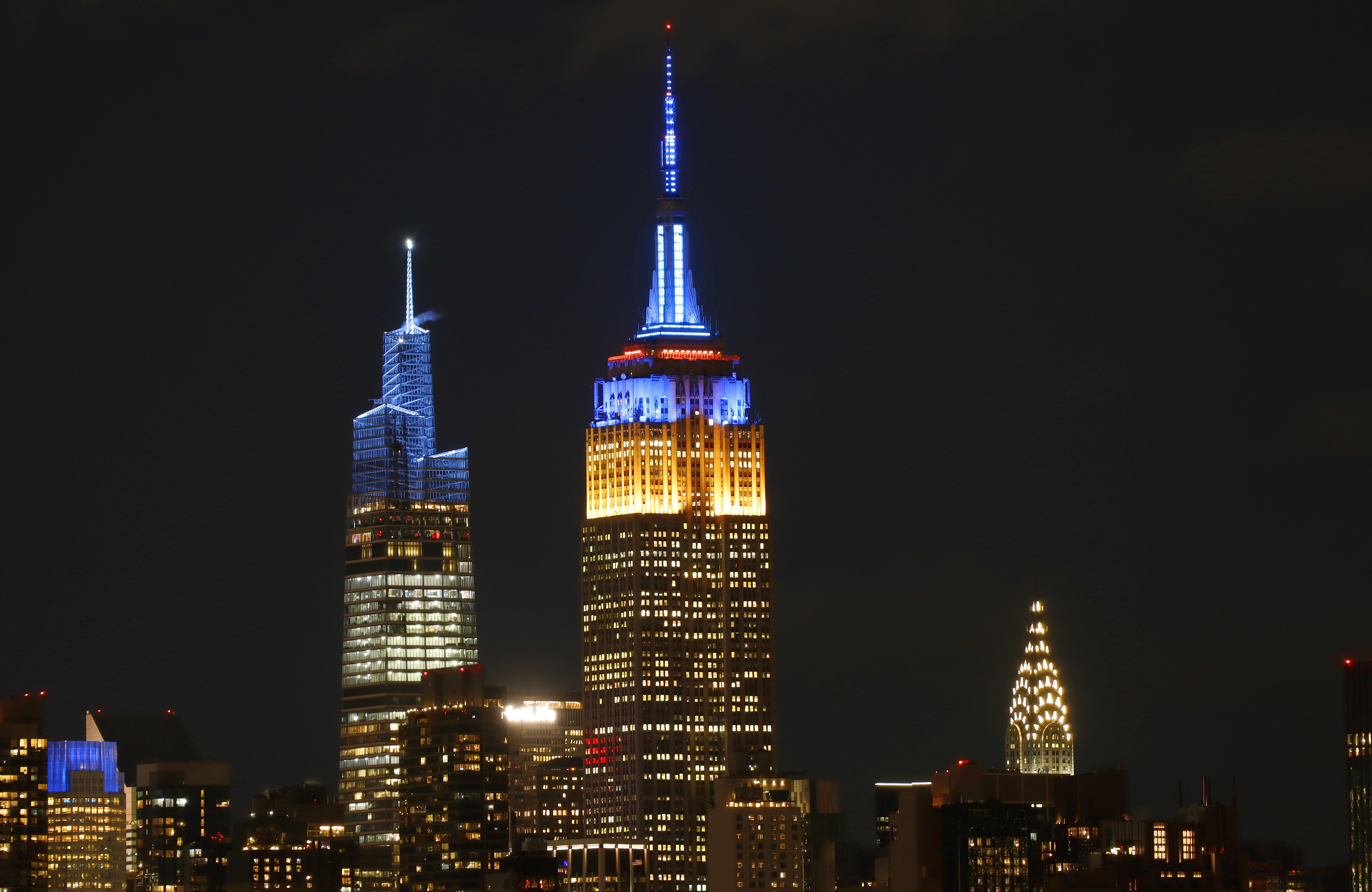 New York City: The Empire State Building is lit in the colors of the flag of Ukraine in New York City.