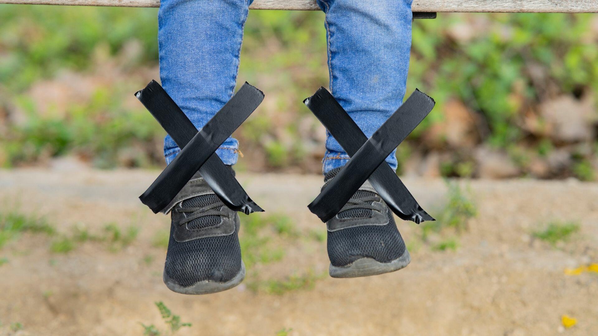 “We had to use scissors because he was actually crying from trying to peel the tape off,” the mother claims, adding that the boy's ankles were irritated. "I can tell it affects him emotionally. He was pointing at the scratches on his ankles. He was crying about it."