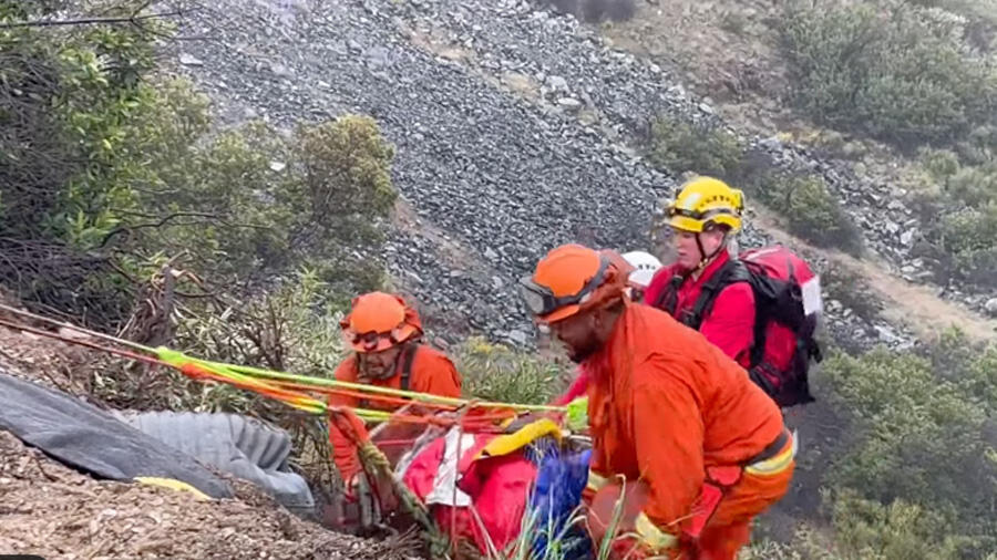 A small army of search and rescue teams worked for four hours in the rain and steep terrain to pull the two up the cliff. "The area that this car went off is an extremely steep canyon and it's an extremely rural area of the county," Briese explained. "I know the ropes they were using were 600-foot ropes, and once they reached the patients, they had about 100 feet left."