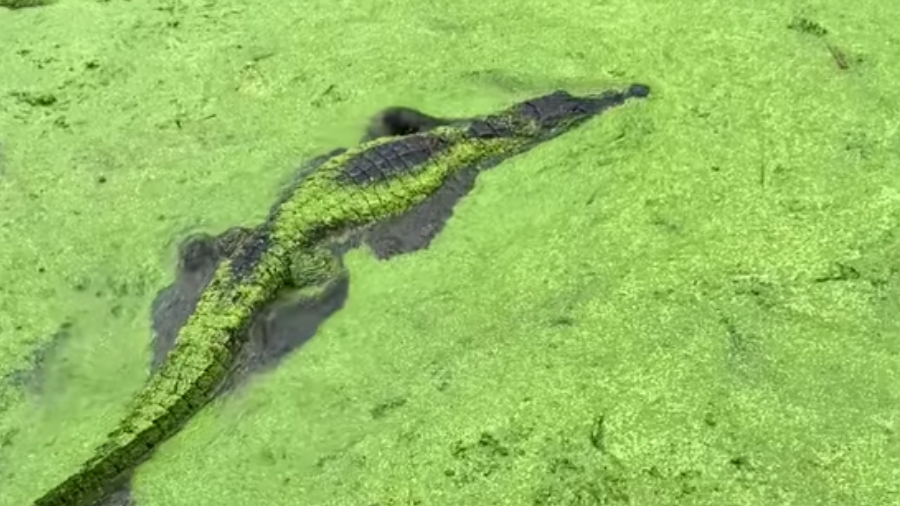 Alligator Swimming in DuckweedAn American Alligator wades through shallow water covered in duckweed, eventually becoming almost completely camouflaged in green. Video by Penni Phillips/USFWS
