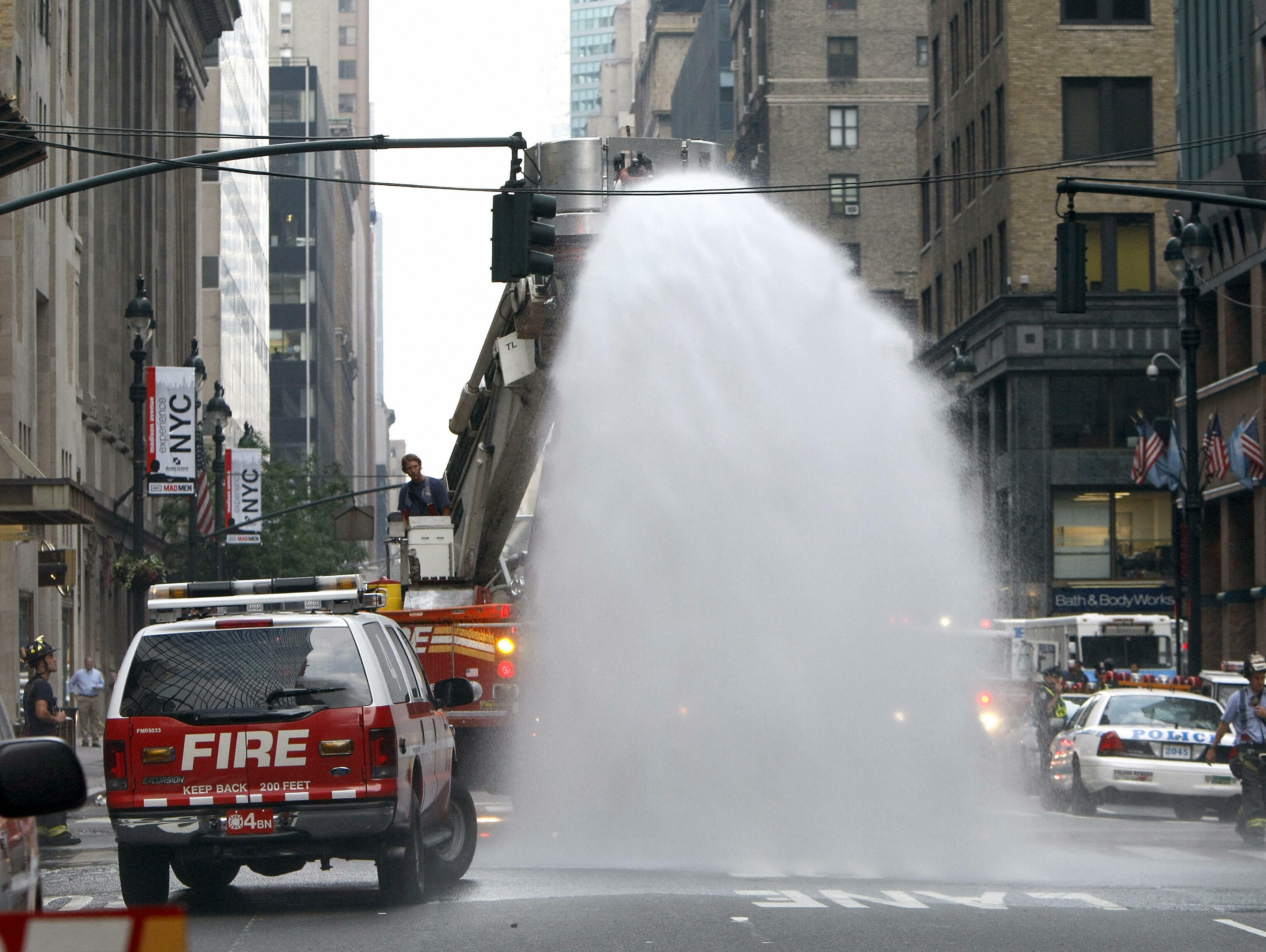 A resident noted one geyser blasting into the air and reaching higher than most of the buildings.