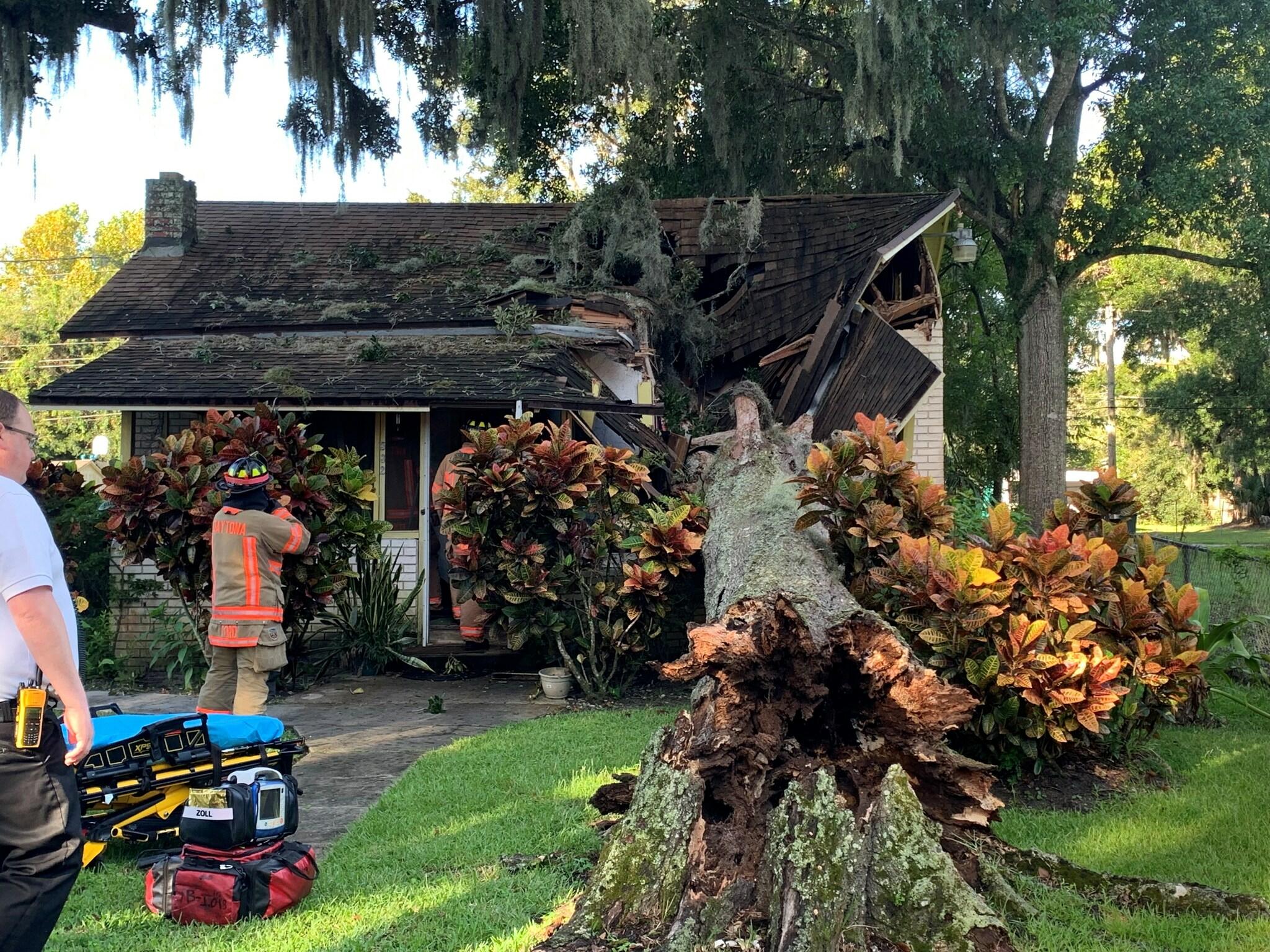 The Daytona Beach Fire Department responded to a home on Tuesday (September 13) after a fallen oak tree trapped 89-year-old Katie Speed inside. She told reporters she heard the tree cracking and was able to jump out of her bed in time before the tree crashed through her roof. She only had seconds to spare.