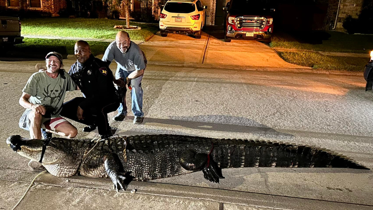 An alligator on an early morning stroll in a Texas neighborhood was safely wrangled by police earlier this week.