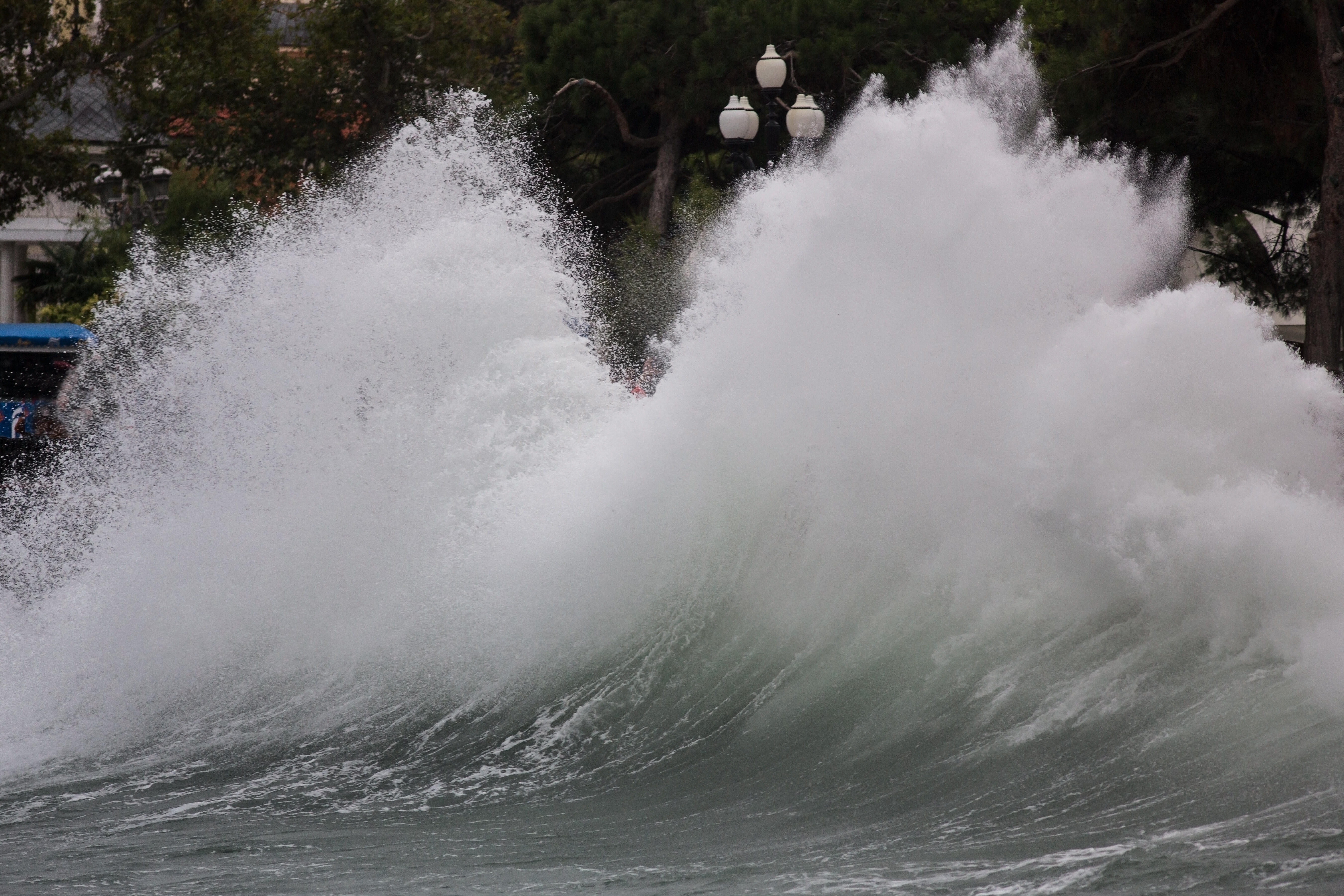 Mike Bettes, the host of Weather Underground on The Weather Channel, posted "rare" footage of a dangerous storm surge sweeping through Fort Myers Beach, Florida. The meteorologist says the camera is six feet off the ground on Estero Boulevard. Video shows huge waves battering the camera as trees and poles waver from the hurricane-force winds.