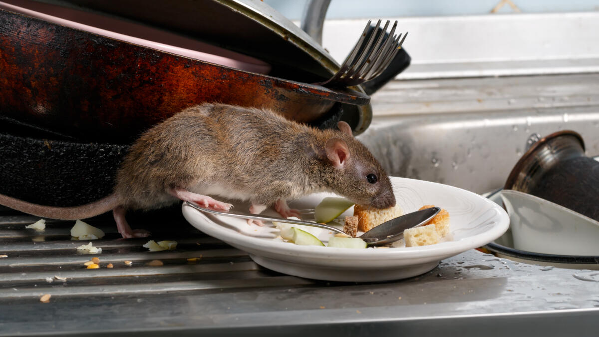 To help prevent rats inside a residence, Orkin advises to keep food stored away, clean up clutter around the house, and keep an eye out for signs of an infestation, such as rat droppings and burrows.