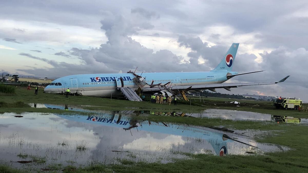 A Korean Air plane overshot a runway while landing at a central Philippines airport late Sunday (October 23) and caused a shutdown at one of the country's busiest airports, the Associated Press reports.