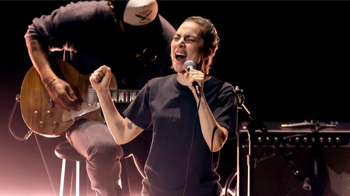 "[The song is] deeply personal for me and I think that well all need each other. We need a lot of love to walk through this life and we all need a hero sometimes. There are heroes all around us in unassuming places but you might find that you can be your own hero even if you feel broken inside," she said before launching into "Hold My Hand" from Top Gun: Maverick, which was nominated for Best Original Song.