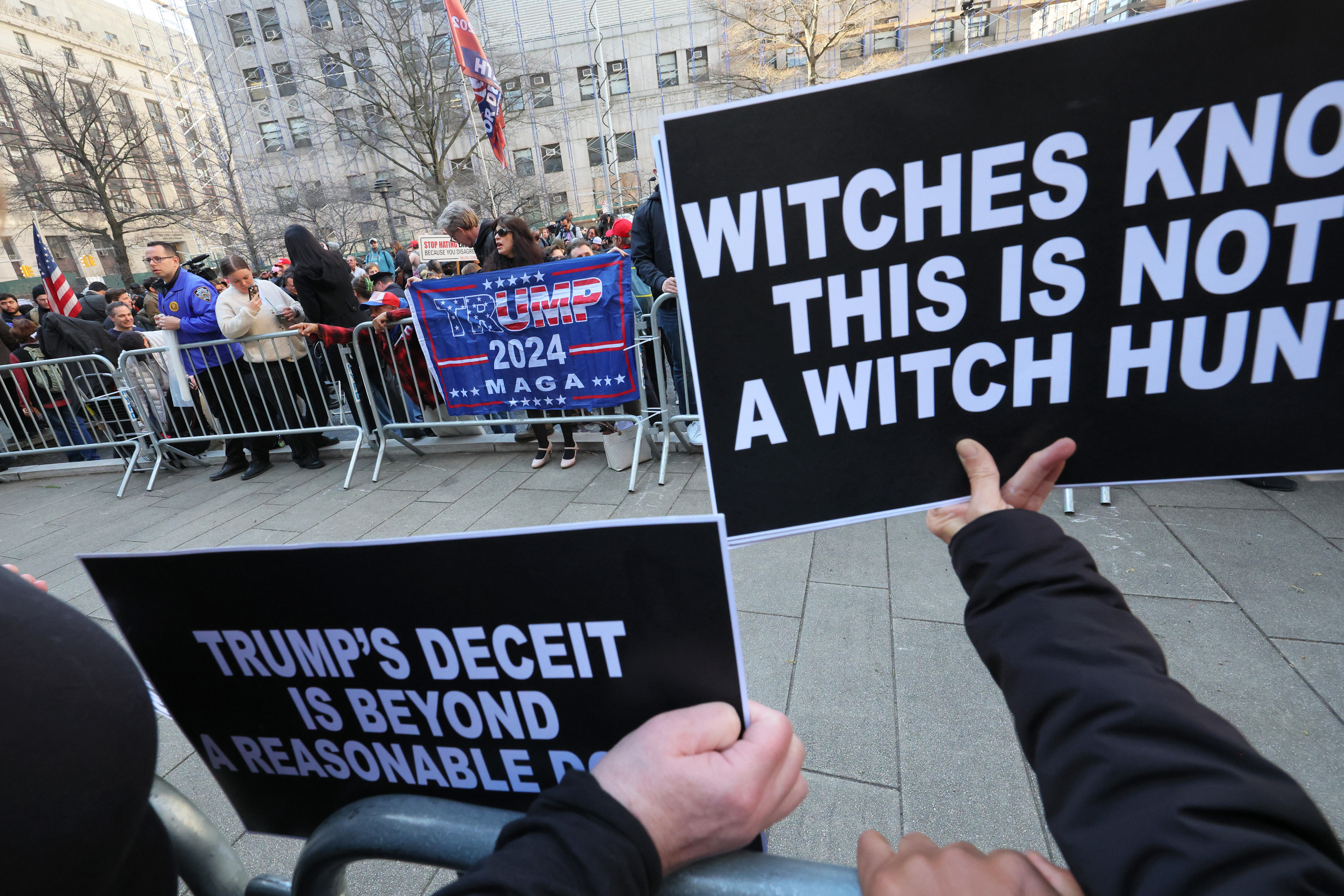 Protesters Gather Near Courthouse As Donald Trump Turns Himself In