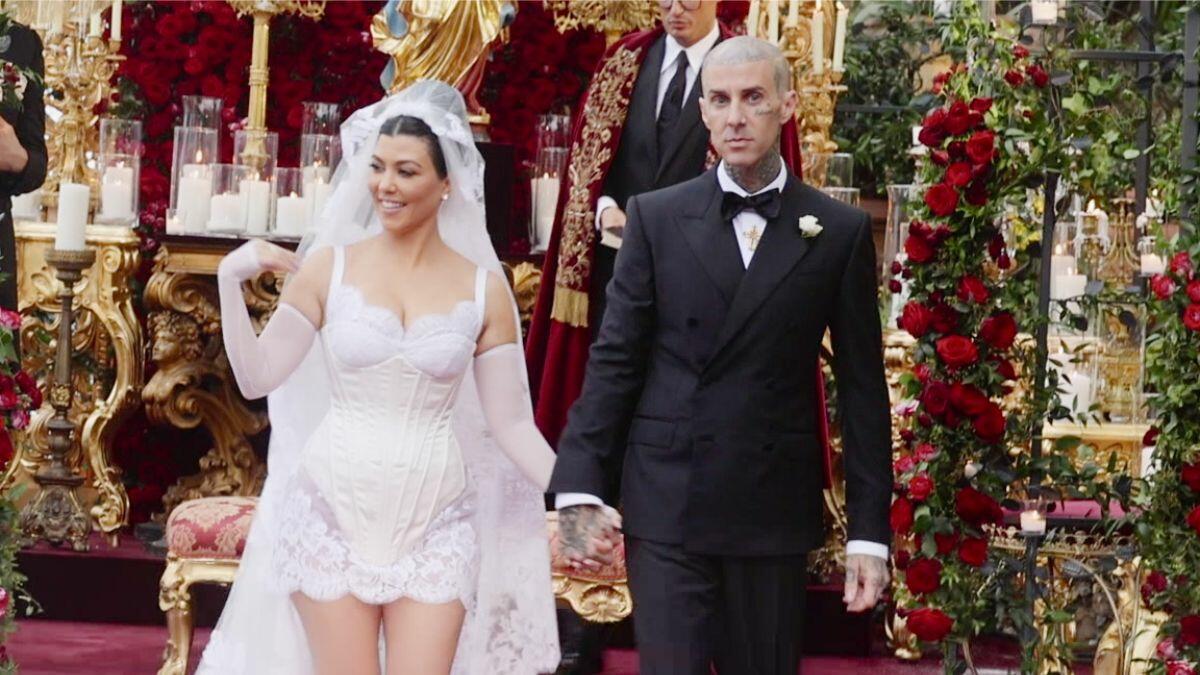 The lavish Italy wedding was technically Kourtney and Travis' third time getting married. The first was a "practice wedding" at a Las Vegas wedding chapel. The impromptu wedding even included an Elvis Presley impersonator as the officiant. During a 2022 episode of The Kardashians, Kourtney revealed that she doesn't even remember the wedding.