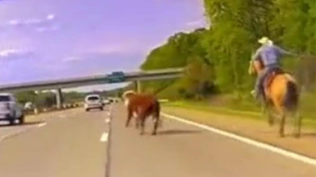 WATCH: Cowboy Lassos Runaway Cow On A Busy Highway