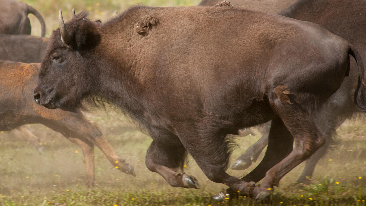 Yellowstone requires all visitors to stay more than 25 yards away from all bison -- the largest mammals in North America -- as they are capable of reaching speeds of 35 MPH and jumping several feet. The park's bison population is estimated between 2,300 to 5,500 and the animal has injured more visitors than any other.