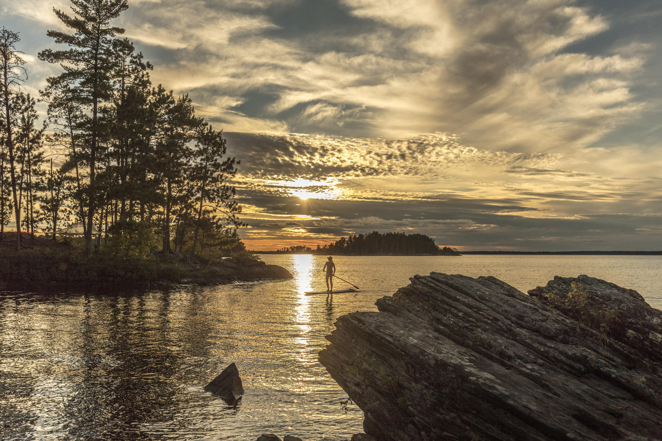 "Tucked away in northern Minnesota near the Canadian border, Voyageurs National Park is all about the water—from border rivers to lakes dotted with tiny islands. During the summer months grab a canoe and row to one of the campsites on the Lake Kabetogama peninsula; come winter, rent a houseboat and cross your fingers for a Northern Lights sighting."