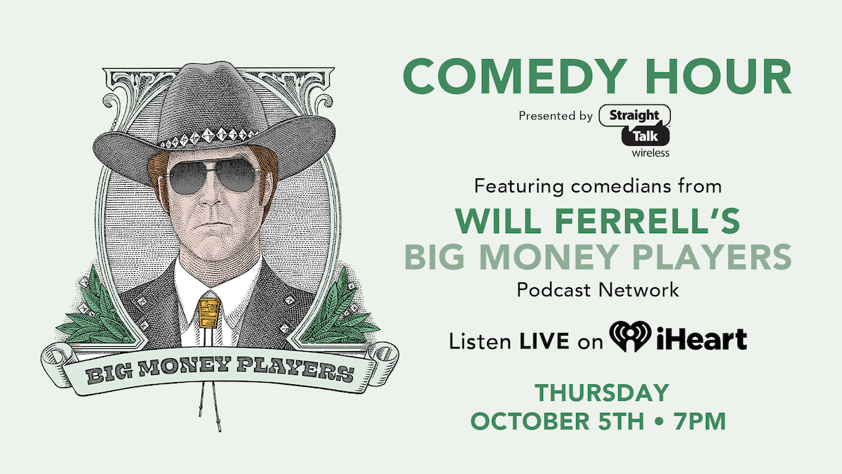 Get ready to laugh, because a very special comedy hour is coming. iHeartRadio and Will Ferrell's Big Money Players (BMP) Podcast Network have teamed up to bring the world the "Big Money Players Circle," which is designed to elevate emerging comedic talent hand-selected by Ferrell and top Big Money Player hosts. And comedy fans everywhere can tune in to the first-ever "Big Money Players Comedy Takeover Hour Presented by Straight Talk Wireless" on October 5th at 7pm local time via iHeartMedia radio stations nationwide.