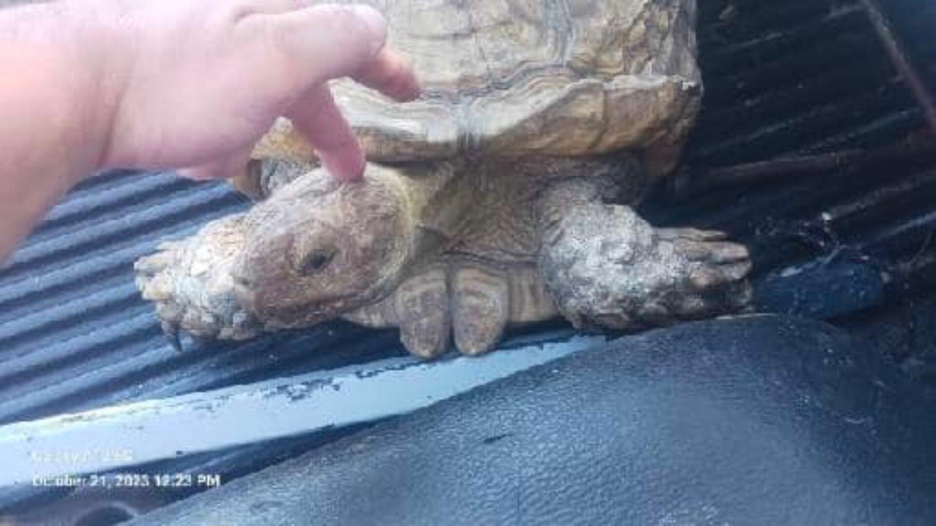 "After the post was shared hundreds of times, one of our followers sent us a post from April 2020 of a sulcata tortoise that looked similar, that went missing from the same area!" the organization wrote. "I was able to compare photos I took to the original post, and It turns out it was the same tortoise!"