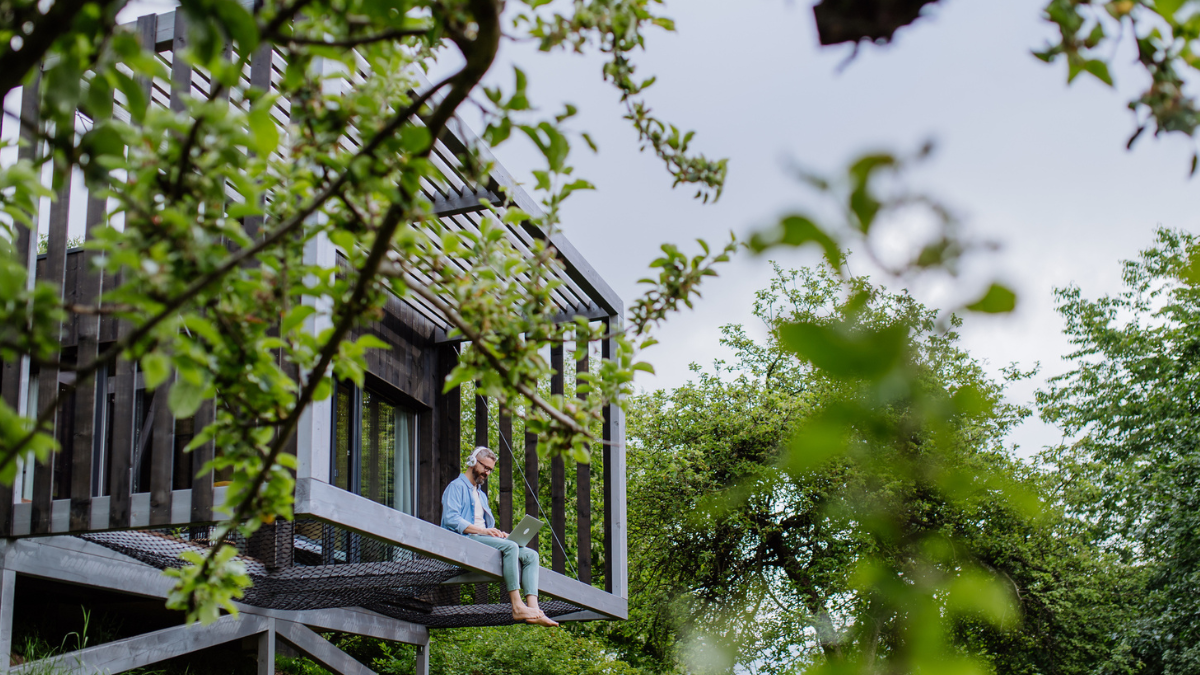 It doesn't get much closer to nature than living among the treetops! A very unique property was recently added to the California housing market that appears to be "floating" in the air. According to the Zillow listing, built for jazz legend Dave Brubeck and his wife Lola in 1953, this house includes four bedrooms, four bathrooms, and a breakfast bar with stone counters.