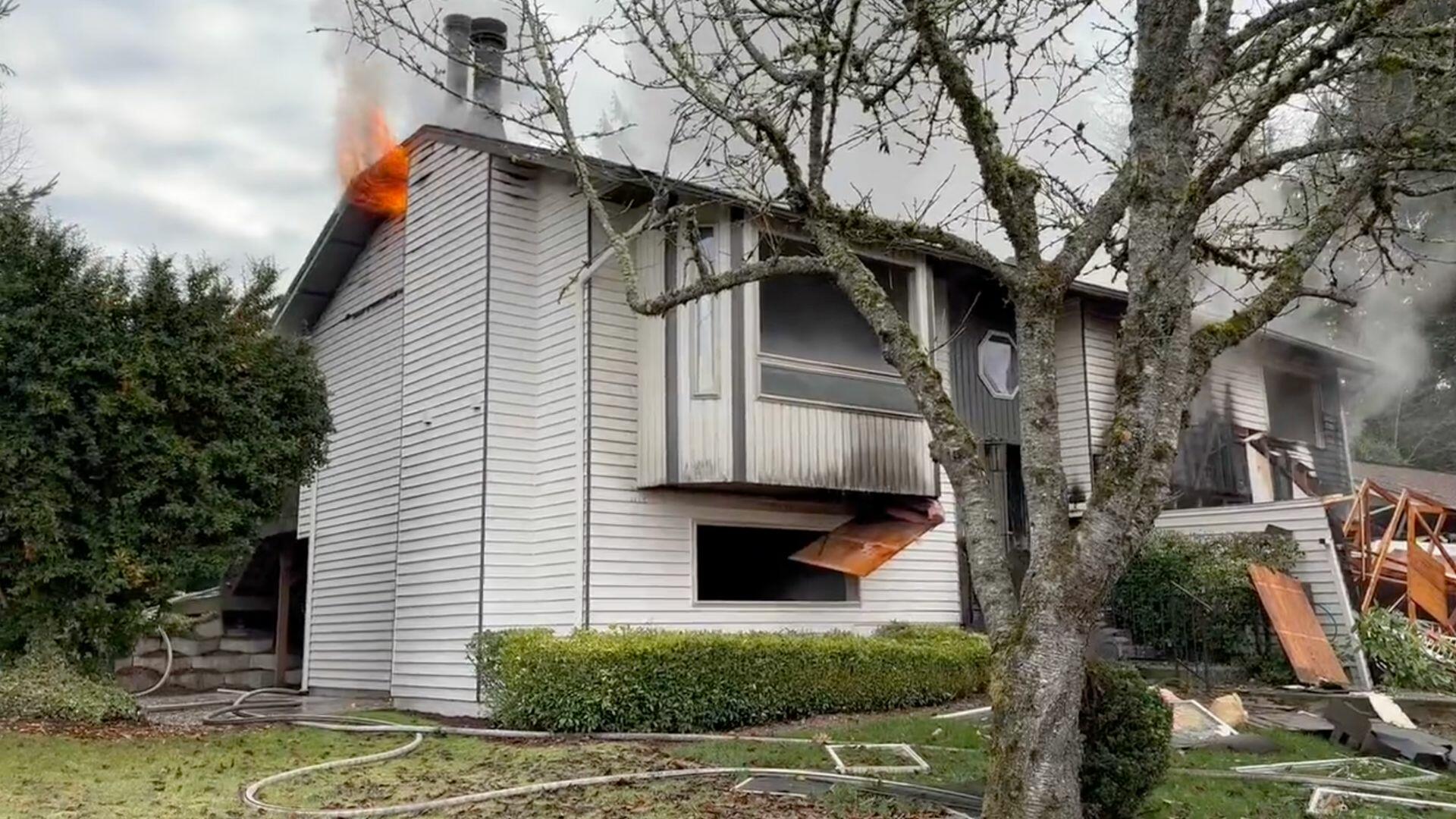 “That’s part of the roof structure that had collapsed during the explosion,” Peter Mongillo, Snohomish Regional Fire and Rescue’s PIO, explained to the news station. “You could imagine firefighters walk up and they’ve already lost one way of gaining access to fight this fire because the debris was blocking the garage.”