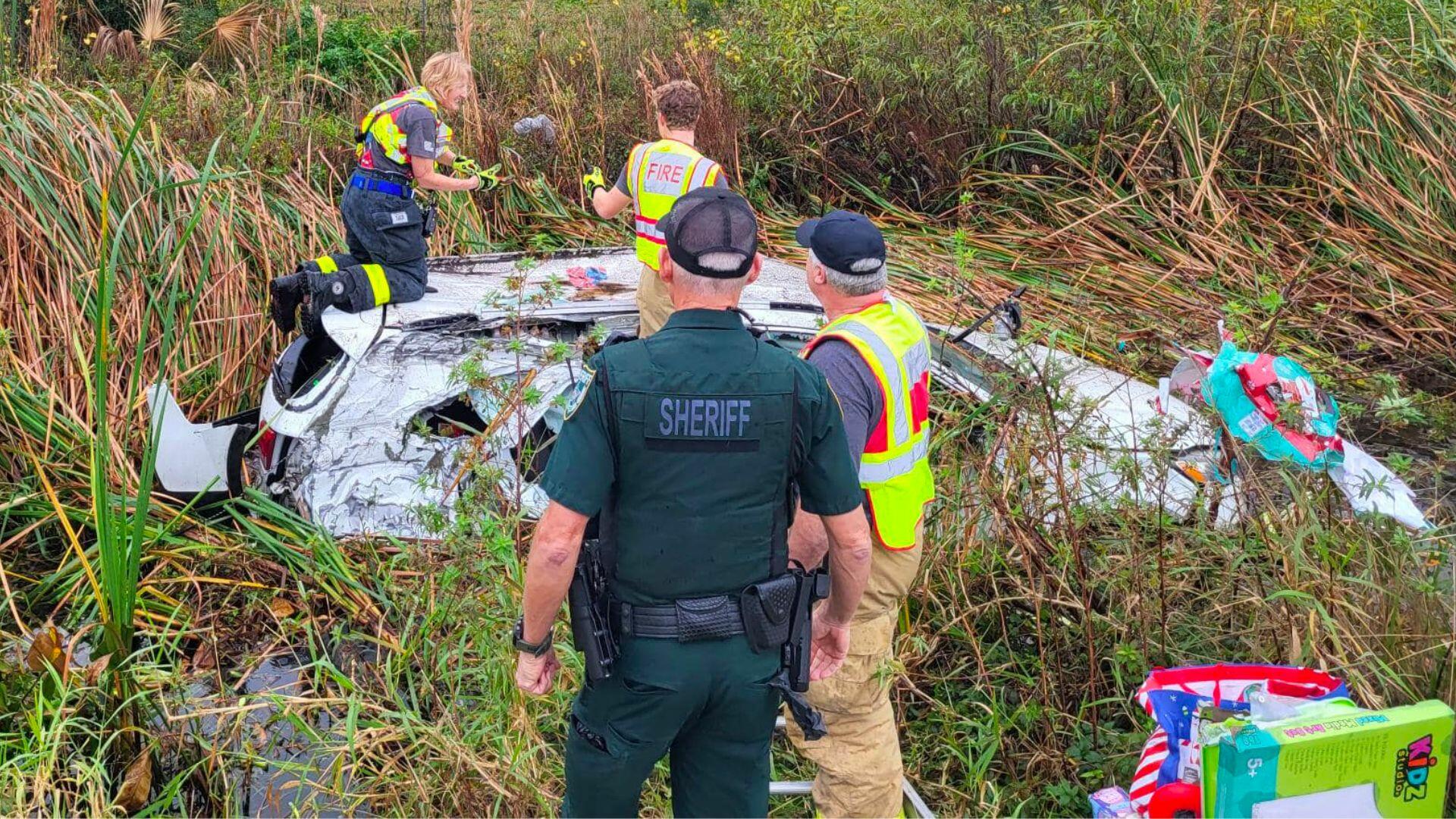 Emergency crews salvaged a Florida family's Christmas after the family's car ended up in a muddy ditch. Volusia County deputies and Ormond Beach firefighters responded to a car crash on I-95 around 11:45 a.m. on Monday (December 25), according to the sheriff's office.