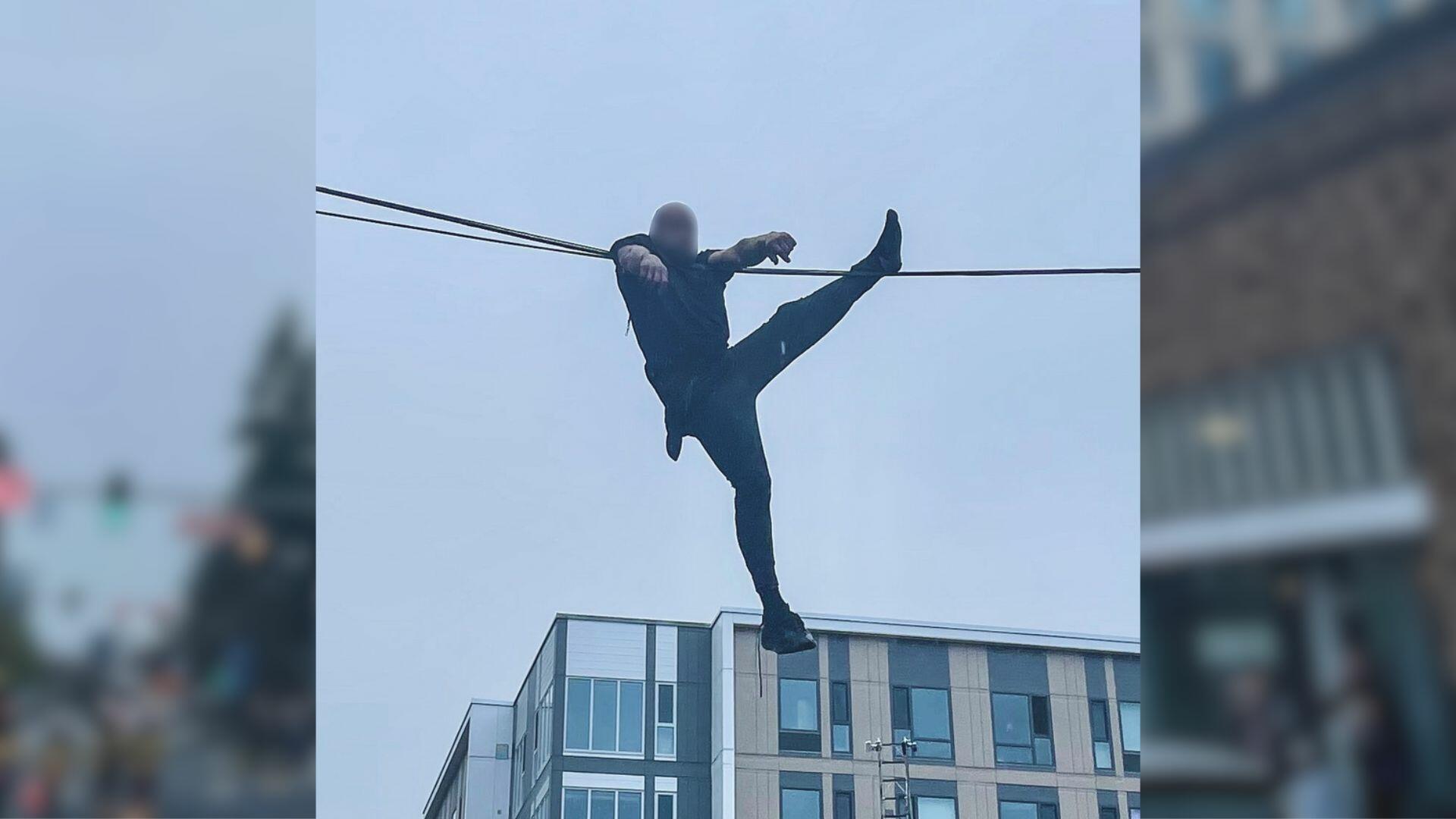 "VPD crisis negotiators attempted to get the male to come down off the roof without success," authorities wrote in the statement. "The male then attempted to cross the street using telephone lines and held himself on the lines for approximately 45 minutes."