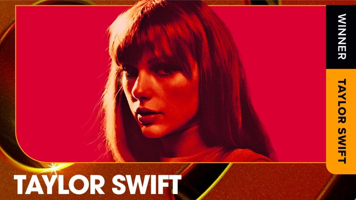 In addition to Artist of the Year, she also took home awards Pop Artist of the Year, Tour of the Year (Eras Tour), Best Lyrics ("Is It Over Now? (Taylor's Version)"), TikTok Bop of the Year ("Cruel Summer") and Favorite Tour Style.