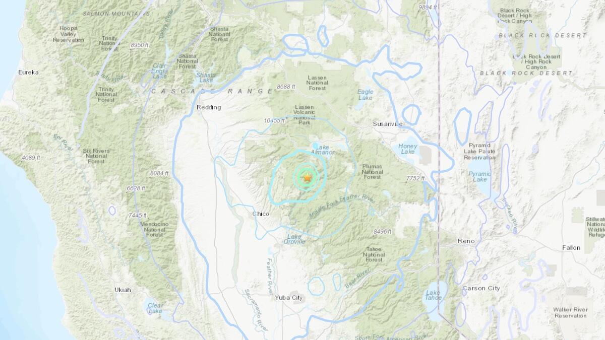 A 4.8-magnitude earthquake was reported in Belden, where a 4.5-magnitude earthquake struck seconds earlier. The latter natural disaster was reported to be centered at a depth of 7.8 kilometers (4.8 miles).