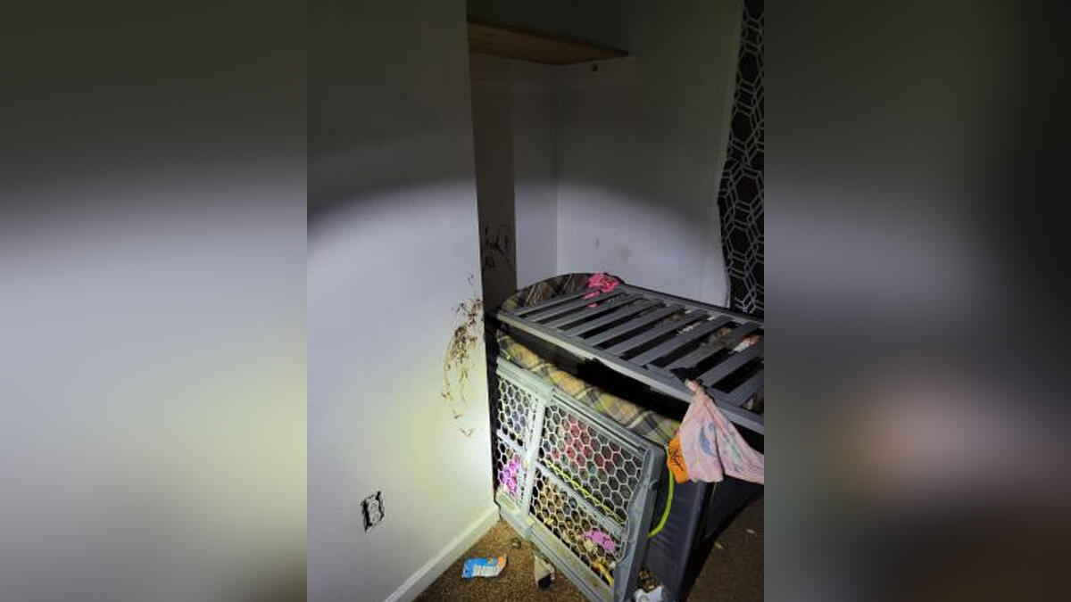 The child was covered in fecal matter, which was also smeared on the walls, and soaked with urine.