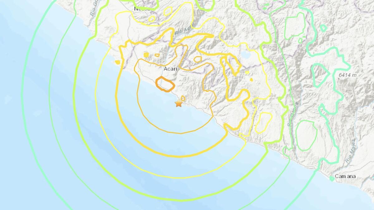 The earthquake was centered in Atiquipa at a depth of 28.0 kilometers (about 17.4 miles). The USGS said it received 111 reports of people having felt the earthquake at the time of publication on Friday.