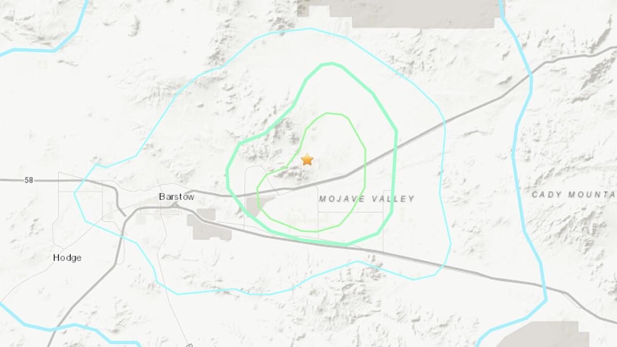 The earthquake was centered in Barstow, California, at a depth of 7.3 kilometers (about 4.5 miles). The USGS said it received 679 reports of people having felt the earthquake at the time of publication on Monday.
