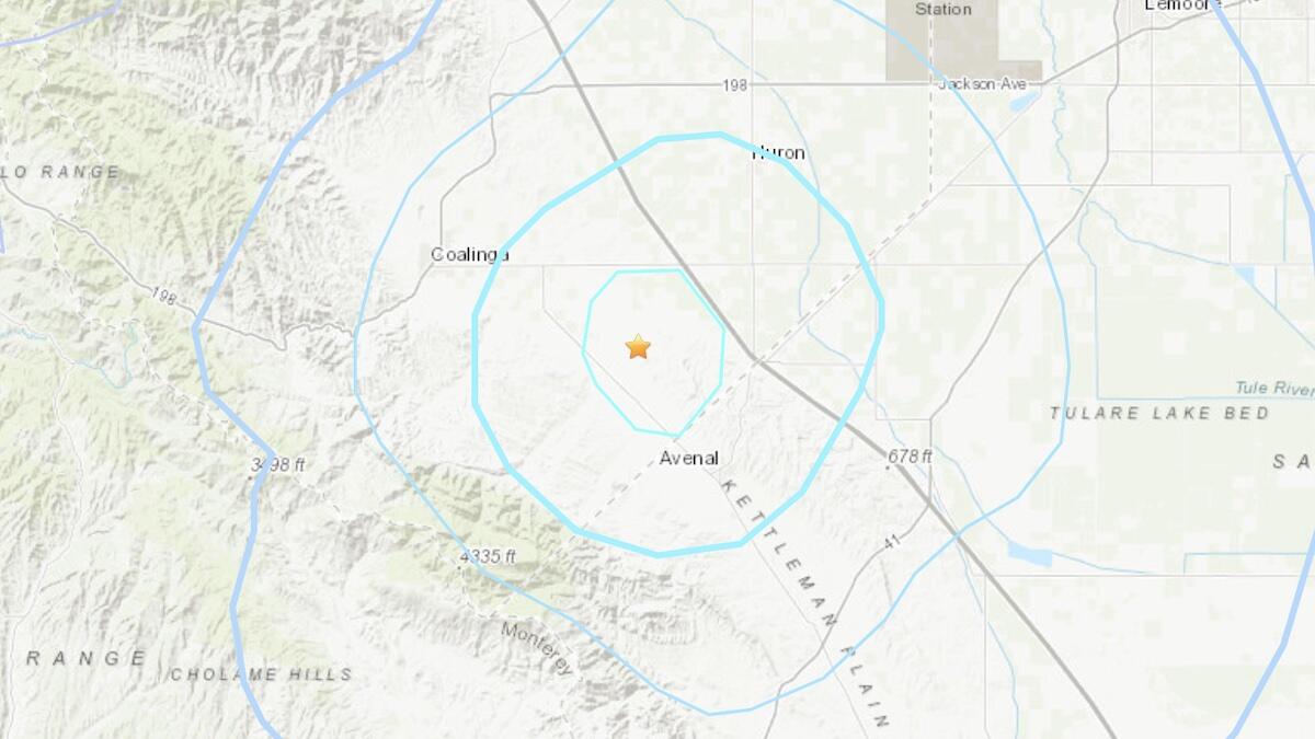 The earthquake was centered in Avenal at a depth of 11.4 kilometers (about seven miles). The USGS said it received 73 reports of people having felt the earthquake at the time of publication on Tuesday.