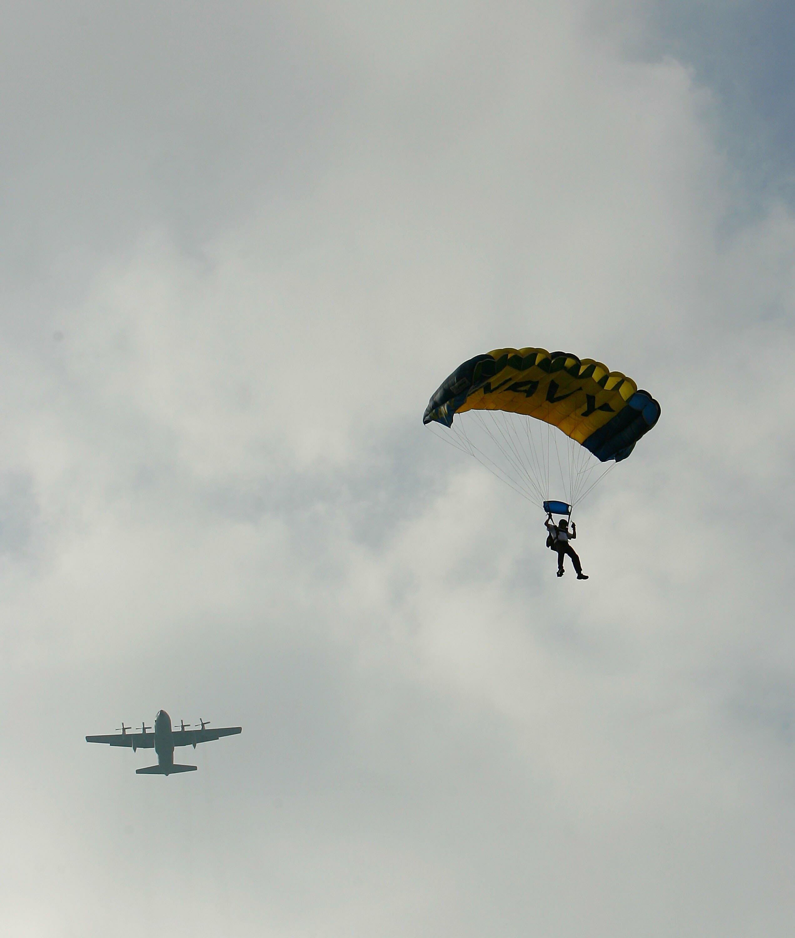 The Navy parachutist was unharmed in the crash.