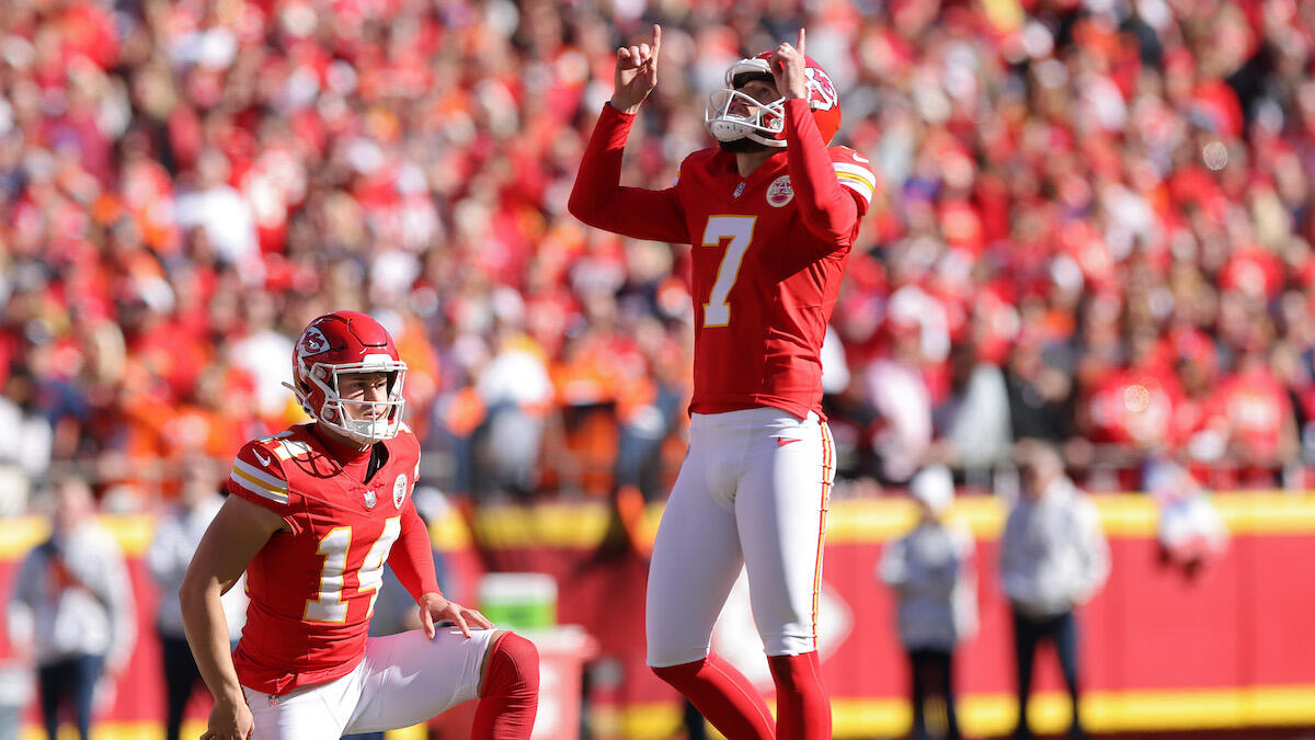 Kansas City Chiefs kicker Harrison Butker is reportedly expected to miss "three to four weeks" and be placed on injured reserve due to a knee injury, sources with knowledge of the situation confirmed to NFL Network's Tom Pelissero on Thursday (November 14).