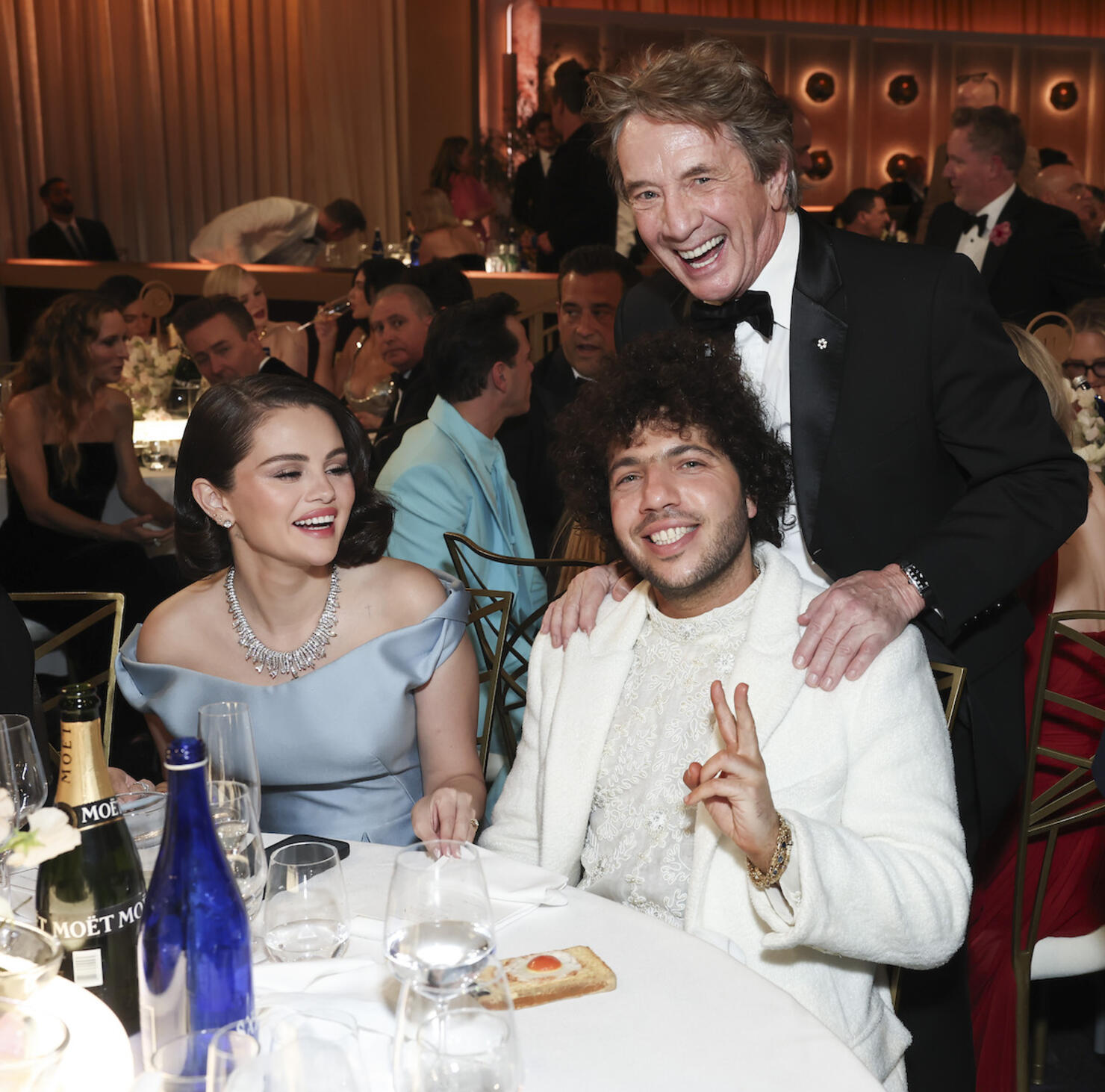 Gomez and Blanco still had a wonderful night, as they were both seen chatting it up with other nominees and celebrities, and even showed off Selena's stunning engagement ring to her Only Murders co-star, Martin Short.