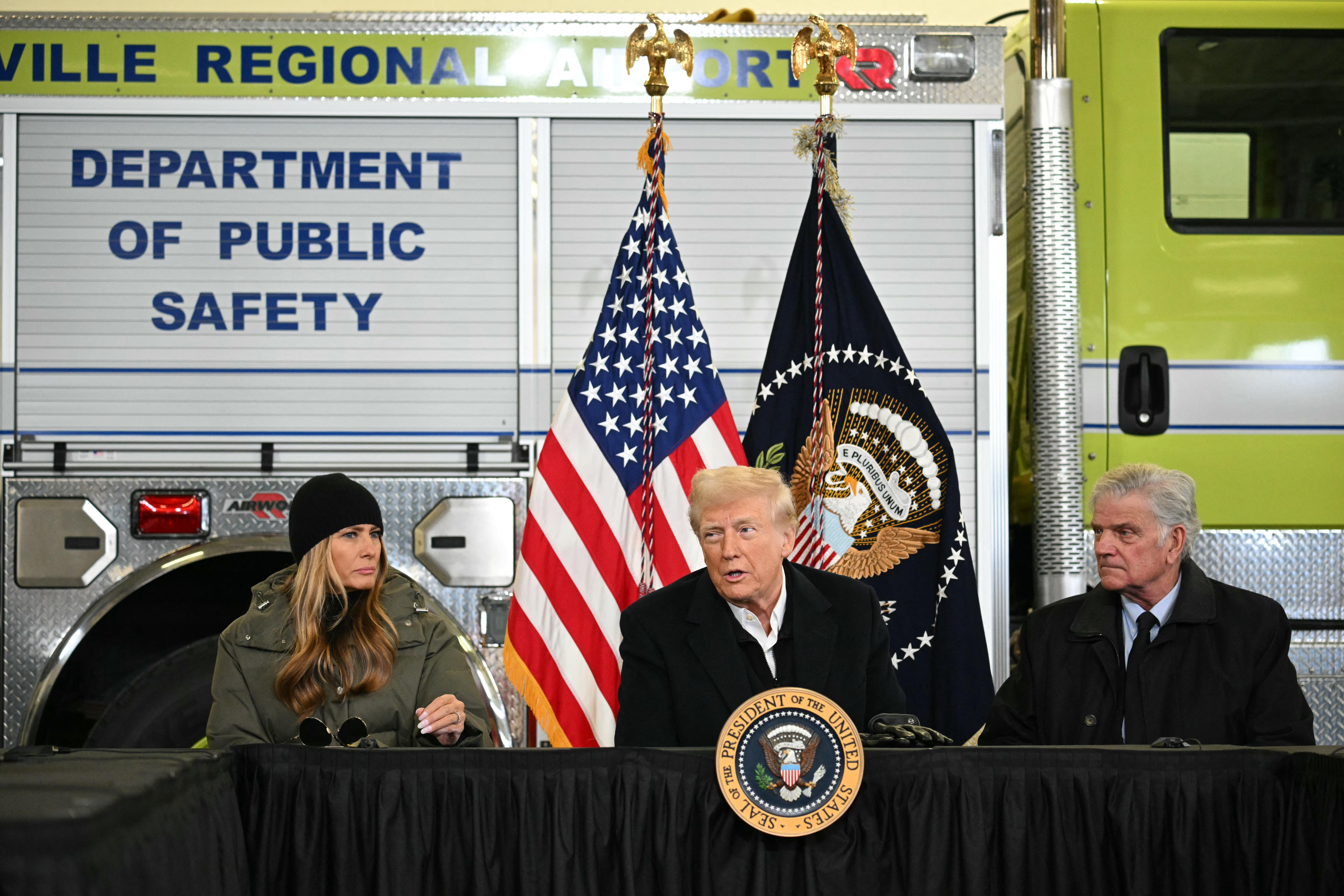 During his visit, Trump met with families affected by the hurricane in Swannanoa, North Carolina, and received a briefing on recovery efforts in Fletcher. The president emphasized his intention to support the people of North Carolina, stating, "We want to take care of the people of North Carolina."