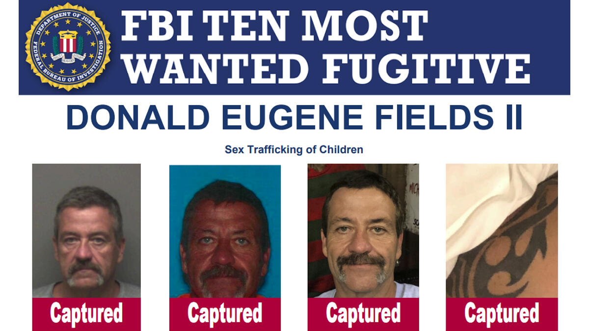 A routine traffic stop in Lady Lake, Florida, led to the arrest of Donald Eugene Fields II, one of the FBI's Ten Most Wanted Fugitives. Sgt. Michelle Bilbrey of the Lady Lake Police Department apprehended Fields, 60, after discovering that the license plate on his vehicle was not registered to the car he was driving. Fields was wanted on federal charges of child sex trafficking and state charges of child rape.