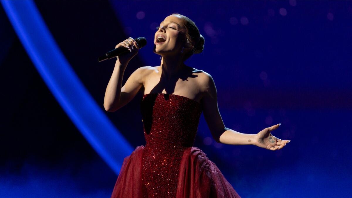 On a night where her film Wicked was nominated for 10 awards, including best supporting actress for her performance, Grande paid homage to the film that started it all. Bathed in the smoky spotlight in front of a starry, moonlit backdrop, Grande wowed the crowd with a breathtaking rendition of "Somewhere Over the Rainbow," putting her own spin on the song made famous by Judy Garland as Dorothy in the 1939 film.