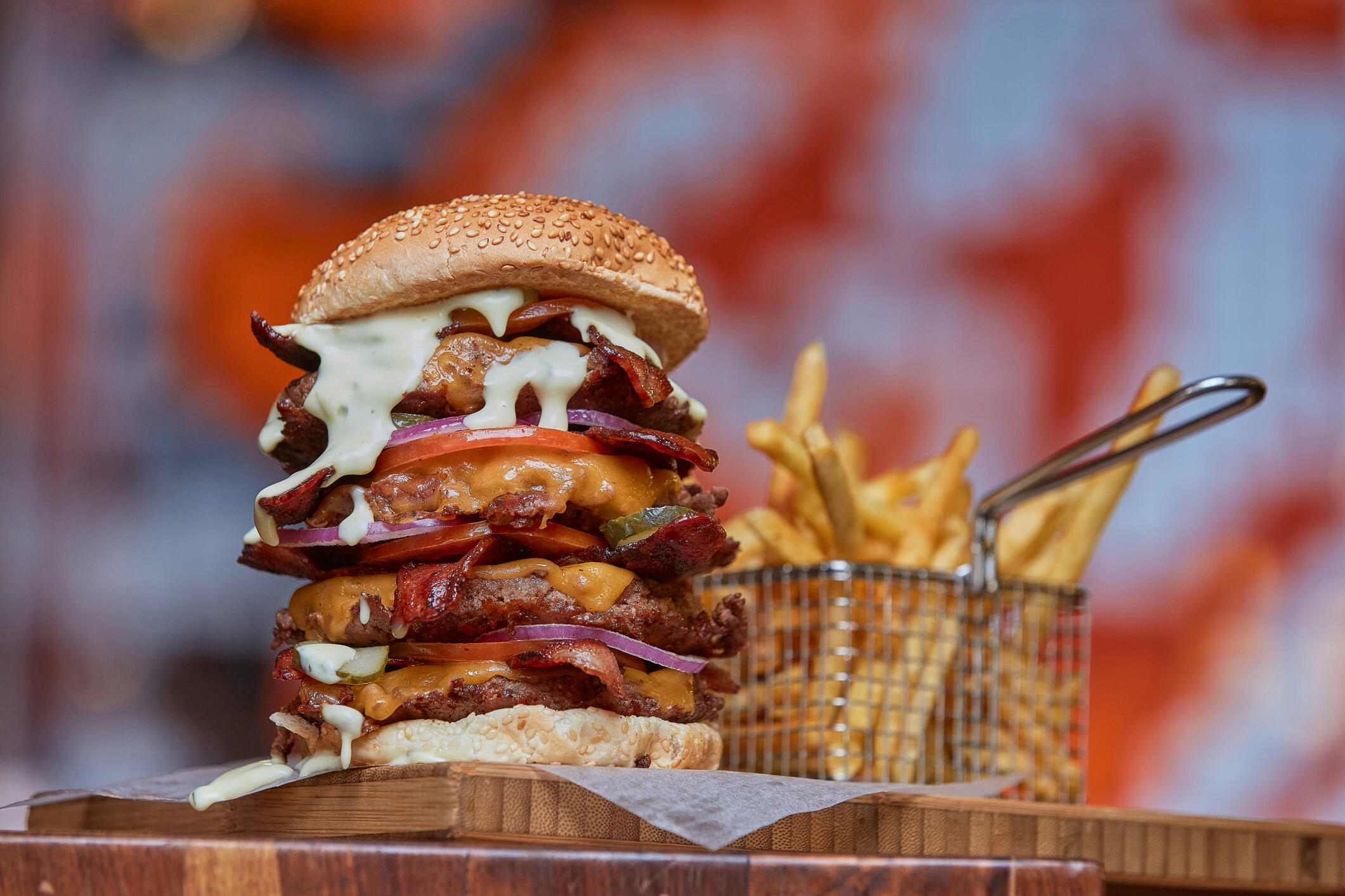 "Now a Minneapolis landmark, Matt’s Bar & Grill quickly became an institution after opening in 1954. As the story goes, a customer asked founder Matt Bristol to customize a burger with a slice of cheese sandwiched between two beef patties. Bristol exclaimed, “That’s one juicy Lucy.” Today, the burger joint is known for its Jucy Lucy (somewhere along the way, the “i” was dropped), a juicy burger oozing with cheese. If you find it on other menus spelled correctly, you’re not getting the real deal, according to Bristol, who continues a friendly burger battle with the nearby 5-8 Club, which also lays claim to the famous molten burger."