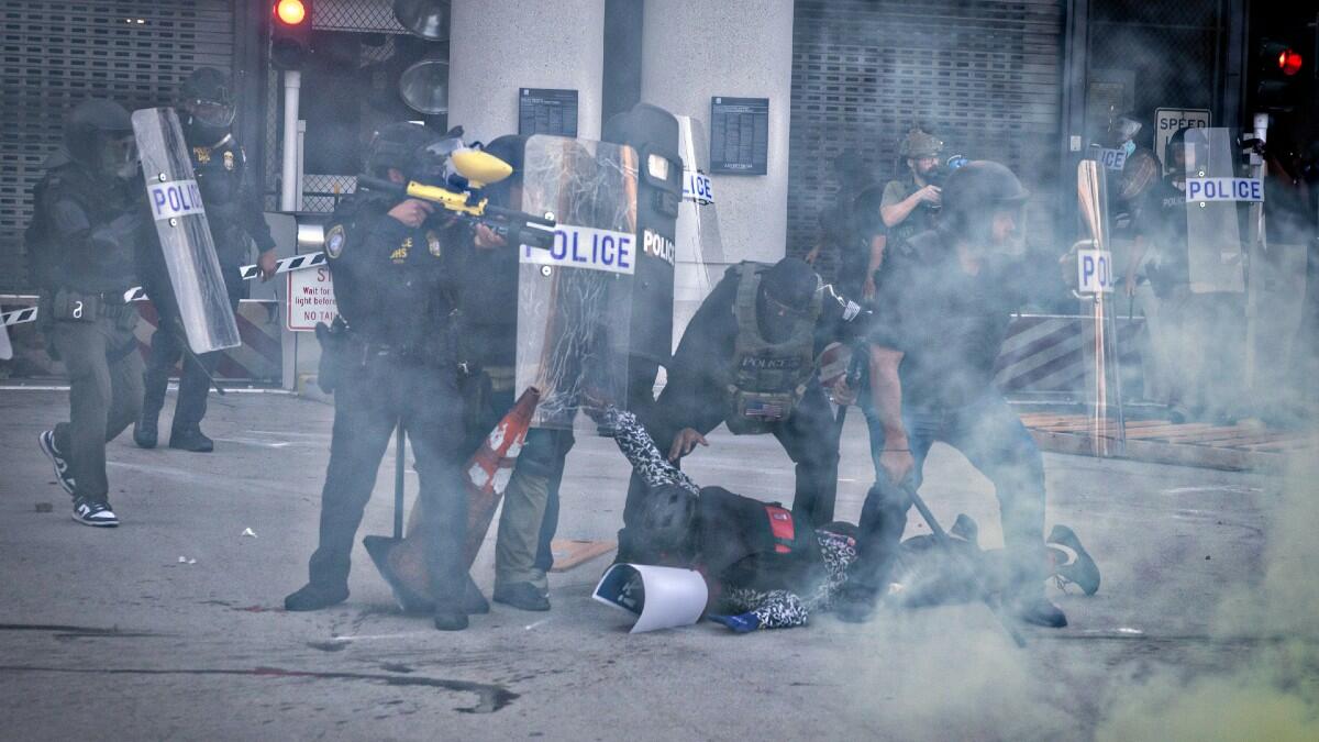 Officers Throw Flash Bangs At Crowd Protesting Immigration Enforcement