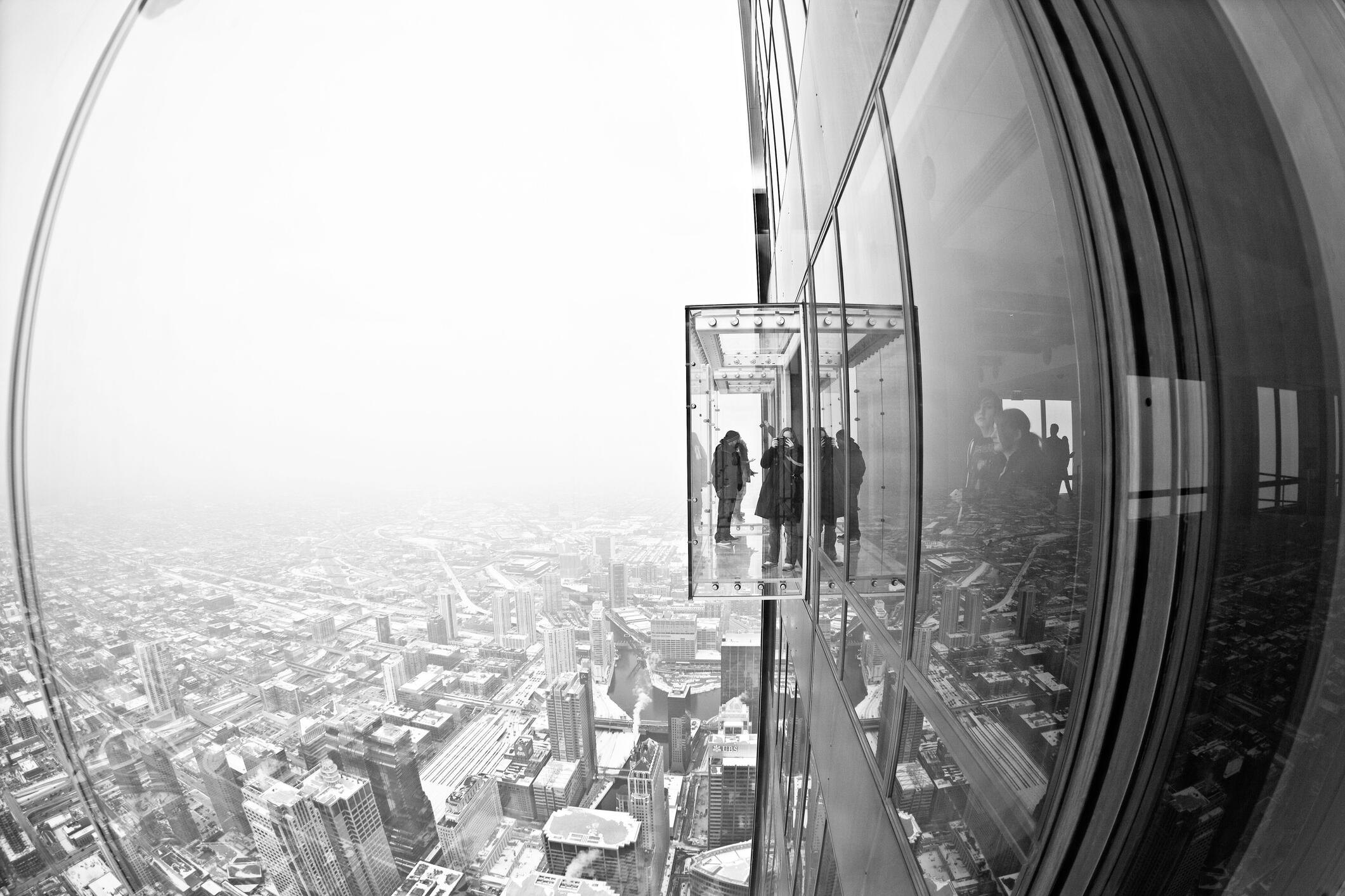 "With just 1.5 inches of layered glass separating you from a 103-story drop, the transparent balconies of the Willis Tower’s Skydeck in Chicago aren’t for the faint-hearted. If you can stomach the height, you'll be rewarded with panoramic views stretching up to 50 miles, spanning Illinois, Indiana, Wisconsin, and Michigan. Still, it might be best to save that deep-dish pizza for after you’re back on solid ground."