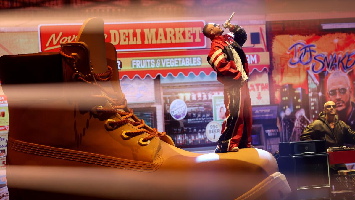 J Balvin performs next to a giant boot at the #VMAs. pic.twitter.com/uBr6H1J3mi