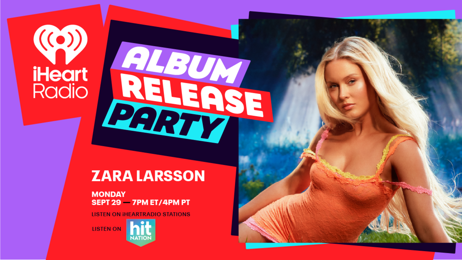 During the iHeartRadio Album Release Party with Zara Larsson, fans will hear perform some of her new music live, and talk about Midnight Sun and more during a special Q&A hosted by iHeartRadio's JoJo. Fans can tune in to the iHeartRadio Album Release Party with Zara Larsson on Monday September 29th at 7pm ET/4pm PT via iHeartRadio's Hit Nation station.