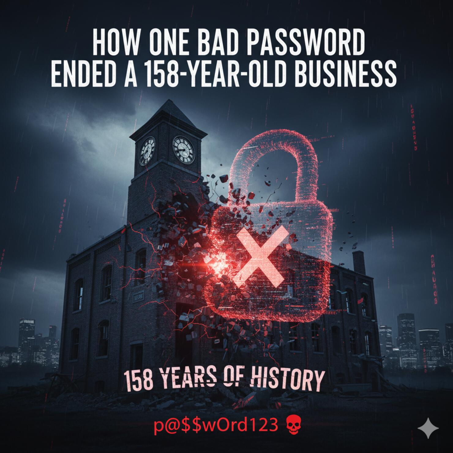 2️⃣ A single weak password brought down a 158-year-old business 💔 — proof that cybersecurity matters more than ever! 🔐