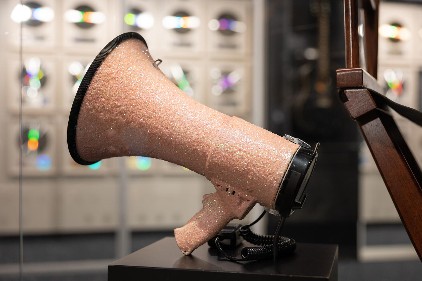 The Hall of Fame revealed items featured in the limited-run display include “a corset designed by The Blonds, Bob Mackie vintage feather headpiece and Christian Louboutin ‘Miss Z Strass’ heels Swift wore in an ad promoting The Life of a Showgirl: The Crowd Is Your King Edition, a shimmering pink Target-exclusive edition of her 2025 album,” plus “a megaphone, director’s chair and paint cans Swift used as props in the commercial,” and more, per a press release issued Friday (December 5).