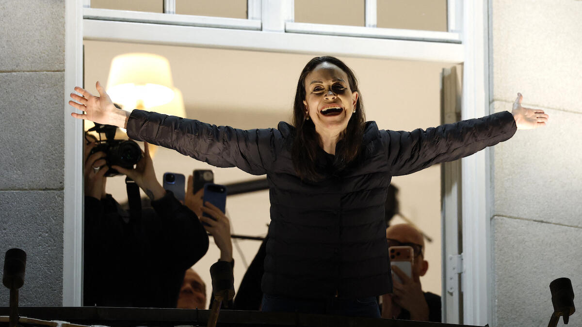 “I want you all back in Venezuela,” Machado said to a crowd gathered outside the hotel, which chanted, “Freedom! Freedom!” as well as “President! President!” and sang Venezuela's national anthem after seeing her, according to the Associated Press.