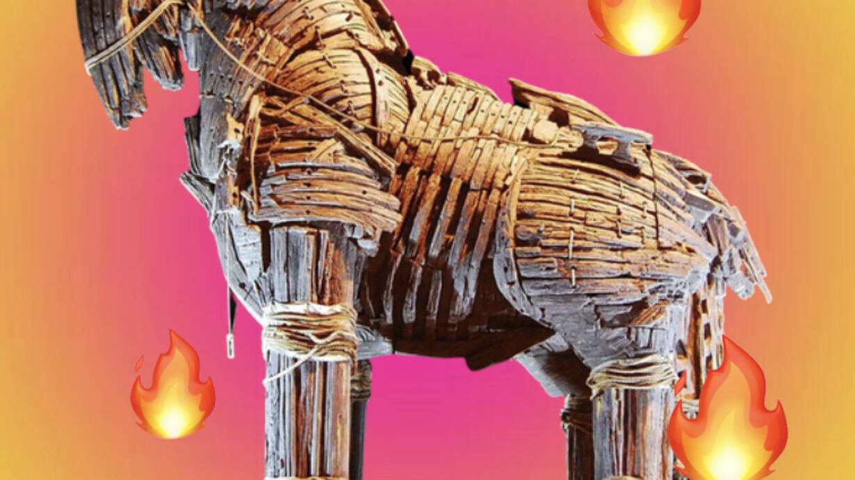 La guerra va avanti, Odisseo ha un’idea brillante (grazie Atena): “costruiamo un CAVALLO GIGANTE DI LEGNO e nascondiamoci dentro così incendiamo Troia”. Ha funzionato.