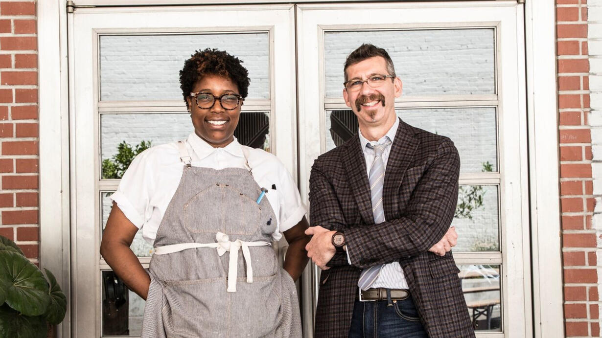Today’s show is an interview with chef Mashama Bailey and John O. Morisano, the duo behind The Grey and Grey Market in Savannah, Georgia. The Grey is located in a former Greyhound bus station on Martin Luther King, Jr. Boulevard in Savannah which operated until 1964, through the Jim Crow era, segregating black and white passengers. Today this space is home to one of the most celebrated restaurants in America, where Mashama serves dishes inspired by her upbringing in Savannah and Queens, NY. On a recent Friday afternoon I met with both of them at a Johno’s Manhattan apartment near Gramercy Park to talk the pressures of running such a historic restaurant and what a business partnership between a black chef and a white co-founder looks like.