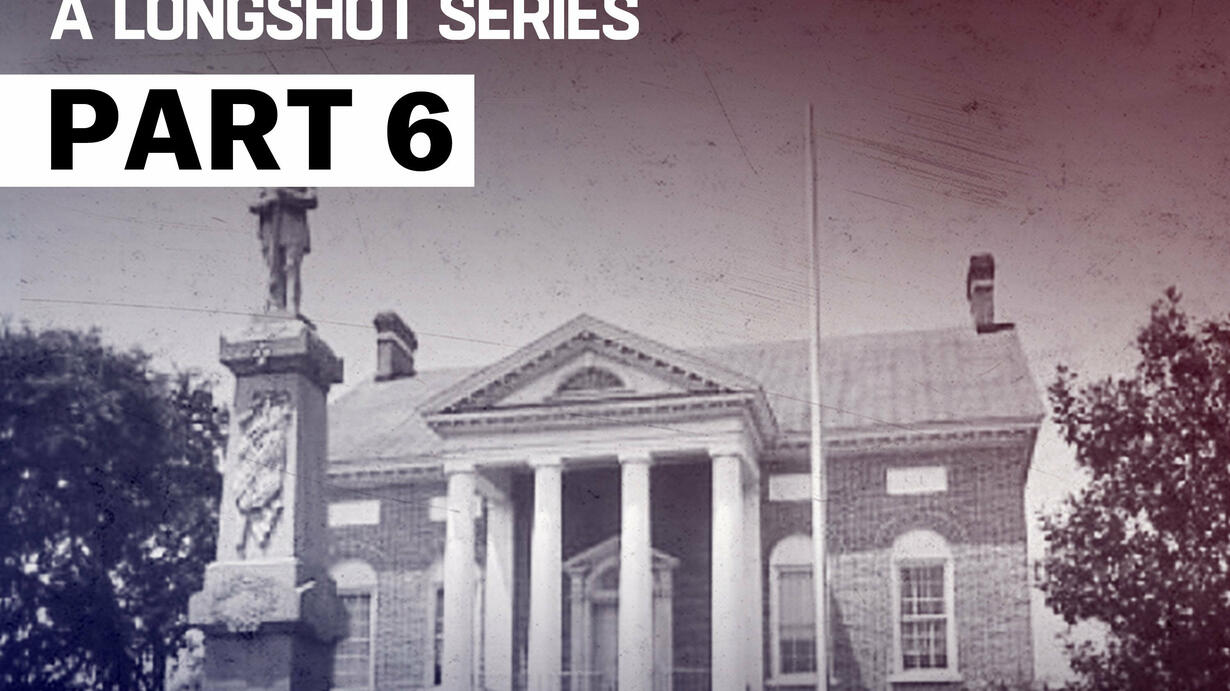 the thirty ft tall Confederate monument standing outside the rebuilt structure.