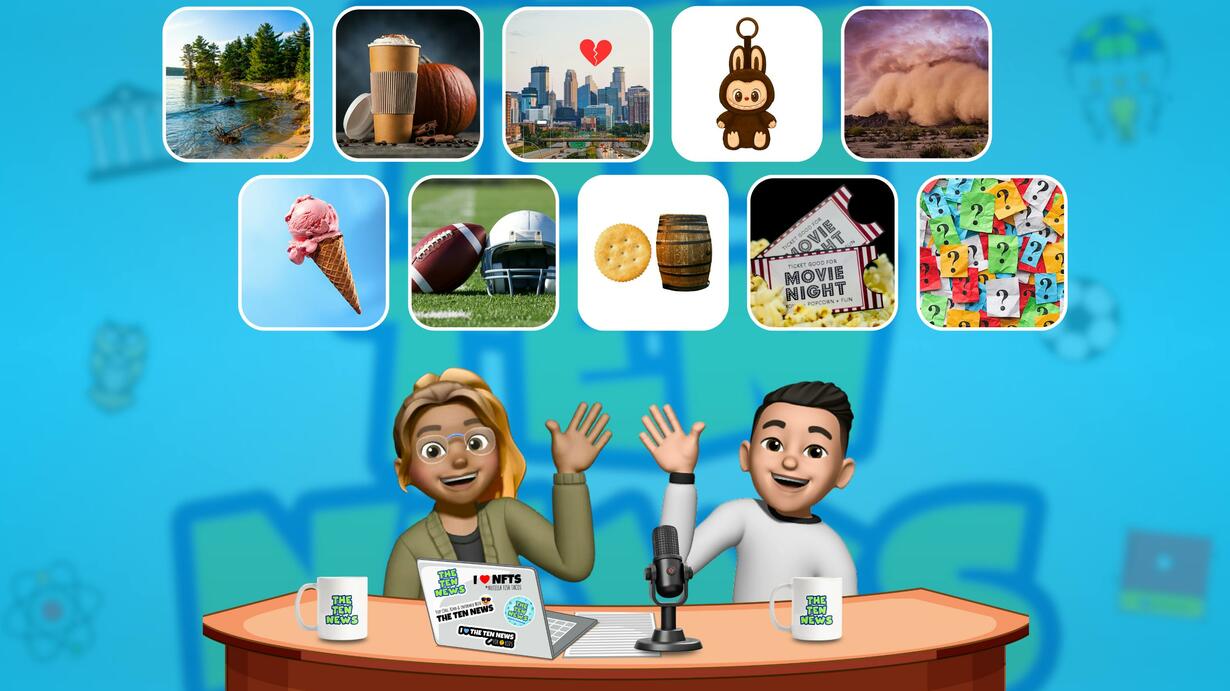 10 Things You Need to Know - Note: There is a mention of gun violence in this episode. 1. National Wildlife Day 🌎 2. A Bear-y Big Sweet Tooth 🐻🍦 3. It's Pumpkin Spice Season ☕️ 4. The NFL is Back 🏈 5. Minneapolis Tragedy ❤️‍🩹 6. Cracker Barrel's New Logo is a No-go 🍳 7. The Latest on Labubus🪆 8. Netflix's Most-Watched Movie 🍿 9. One Dusty Storm 💨 10. Beanie Baby Brain Teaser 🧸 For more resources on how to talk about tough news, please visit our website: https://www.thetennews.com/resources Hey grown-ups, want to support The Ten News? Here are ways you can help! 🥰 Donate ⁠⁠here ⁠⁠and make an impact by supporting news for kids. ✅ Leave a ⁠⁠rating or review⁠⁠ to help others find the show. 📣 Tell a friend about the show! 📲 Leave us a voicemail at 1-877-TEN-NEWS 👚 Get decked out in Ten News merch from our ⁠⁠merch store⁠⁠. And thank you for being part of the Ten News family! 🤪