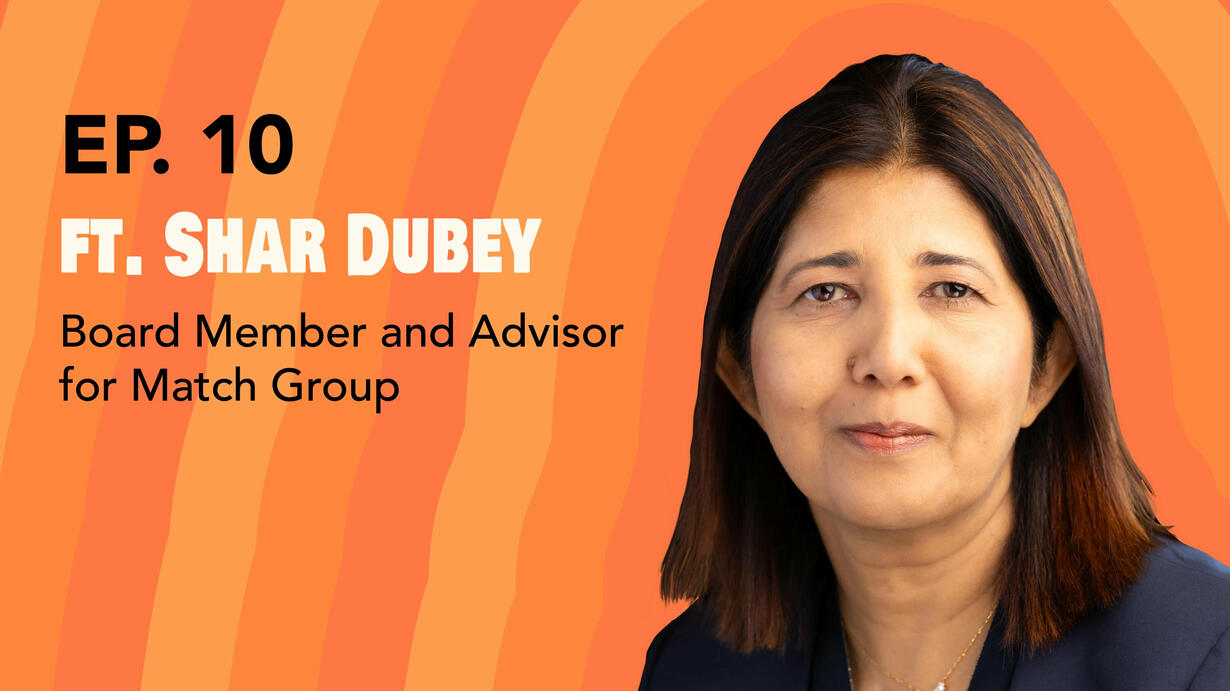Shar Dubey is former CEO, Board Member and Advisor for Match Group. Shar earned her Bachelor's in Technology from Indian Institute of Technology Kharagpur, where she was one of the few female students in her class. For women breaking into a field where they are underrepresented, Shar talks to Vandana about the importance of investing your energy in enhancing your strengths, identifying your unique superpower, as well as her hope for more women to be present in STEM spaces.