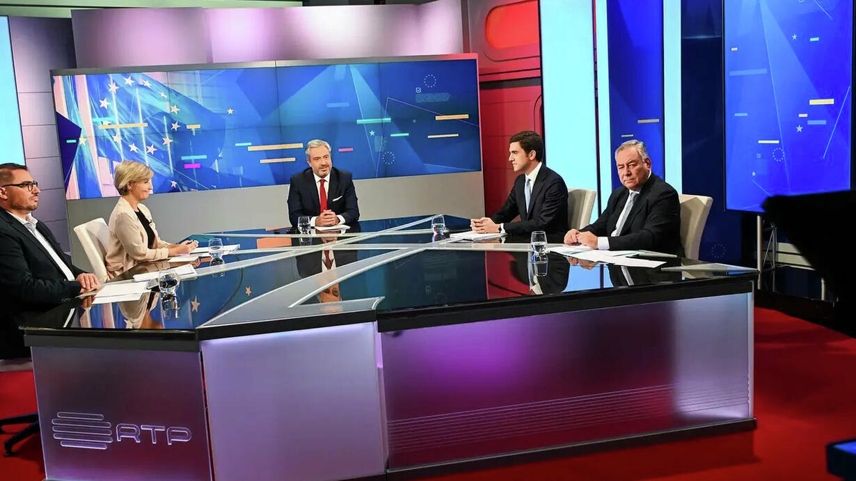 Ouça em podcast o quinto debate entre os cabeças de lista Marta Temido (PS), Sebastião Bugalho (AD), António Tânger Corrêa (Chega) e João Oliveira (CDU), candidatos às eleições Europeias marcadas para 9 de junho. O debate foi transmitido na RTP a 21 de maio e contou com a moderação de Carlos Daniel.